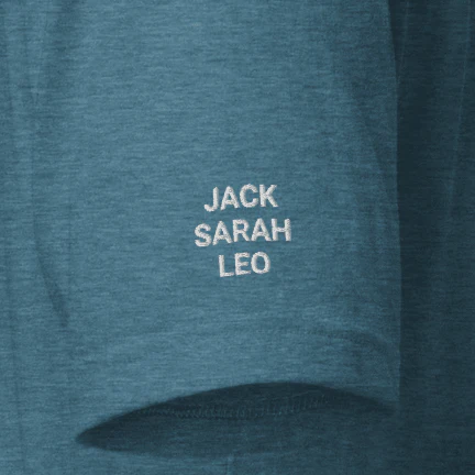 Carry your story wherever you go with The Heartland Heart Tee from Heartland Stitch. More than a custom shirt, it’s a wearable tribute to the people you love — whether celebrating “Mama,” “Nana,” a best friend, or honoring someone special. Each tee features a hand-sketched heart personalized with a name up to 12 characters in the signature Heartland Script. Add the optional sleeve upgrade to include additional names in a clean, stacked font. Available in Navy, Deep Teal, Mauve, and Dark Grey.