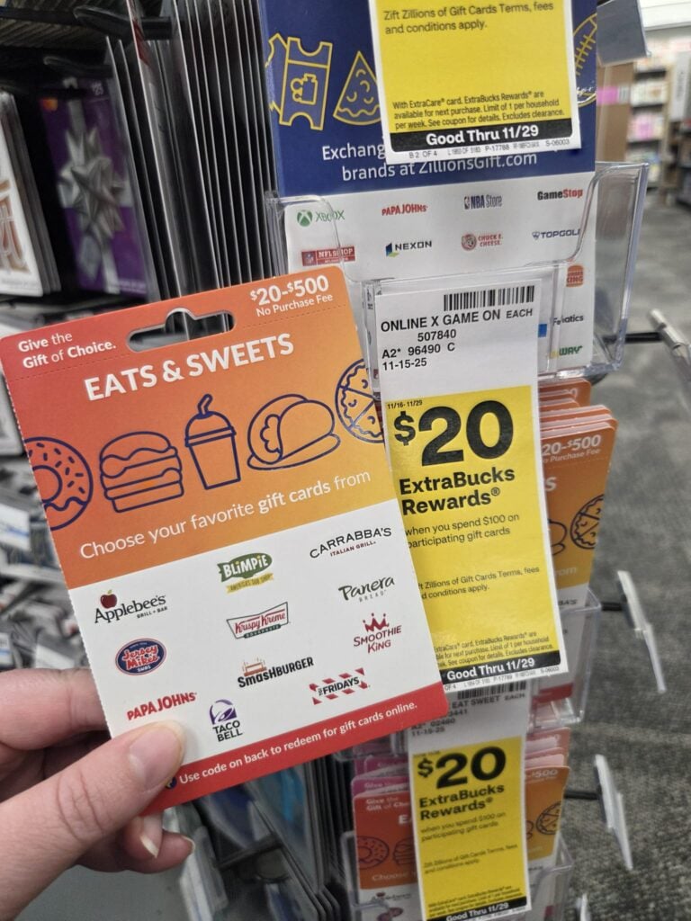 Get ready for Black Friday at CVS! There’s a fantastic gift card offer on participating brands. Spend $100 and get $20 ExtraBucks. Many CVS stores mark participating gift cards clearly. If cards are not marked, ask a store employee. You can mix and match brands any way you like. Your total must reach $100 to earn ExtraBucks. Buy four $25 cards or five $20 cards to qualify. Any combination that adds up to $100 will work. You could buy $50 Zillions, $25 Eats & Sweets, and $25 Netflix. You will still receive the $20 ExtraBucks reward. This deal is an easy bonus during holiday shopping.
