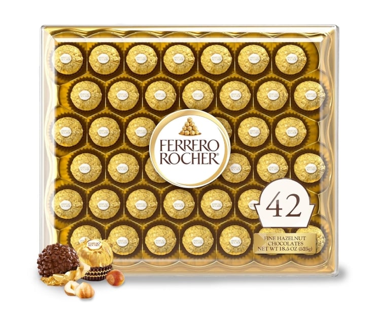 Ferrero Rocher always reads as fancy. Those gold wrappers do the heavy lifting. Also, they are individually wrapped, so they are easy to share or split into smaller gifts.