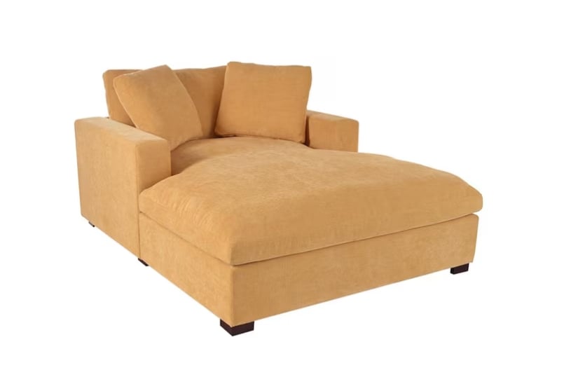 This Home Depot chaise lounge deal is the kind of markdown that actually changes a space. It is a modern square arm chaise in a sunny yellow. It also has birch wood legs for a clean, lighter look. So if the living room feels dull, this is a fix.