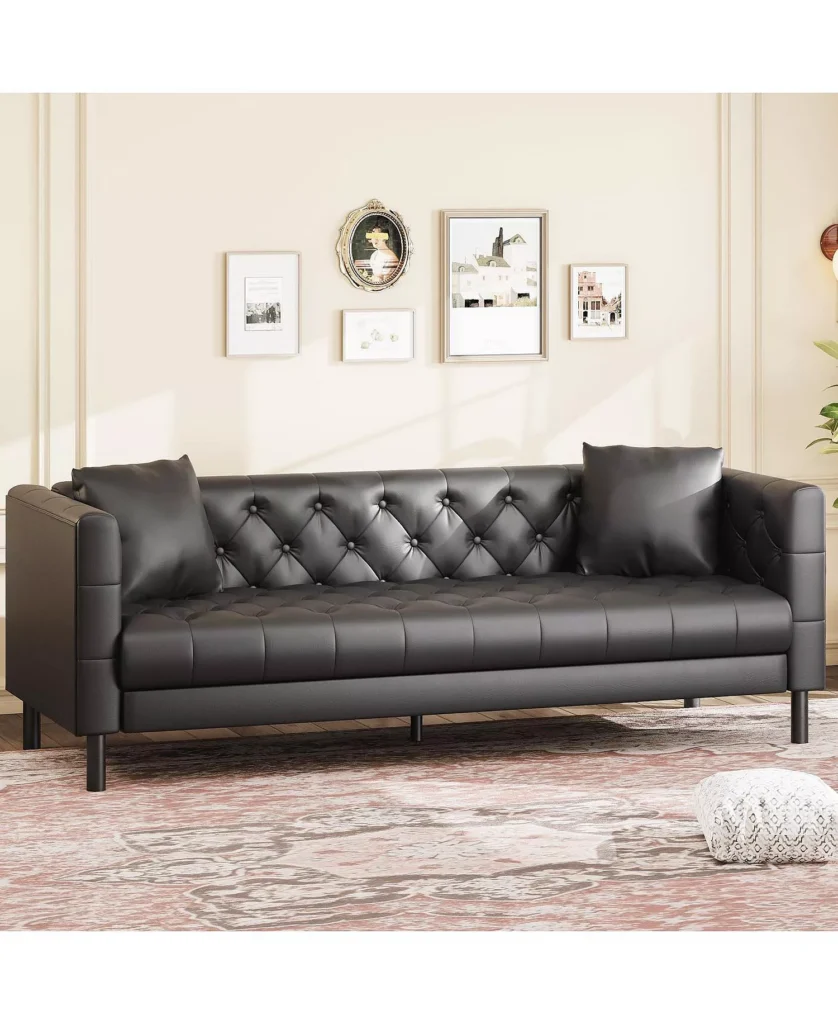 Gaomon 78-Inch Faux Leather Button Tufted 3-Seater Sofa