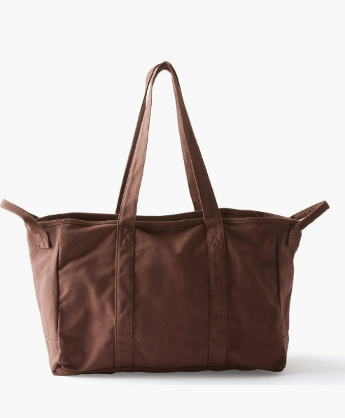 If you want a simple carryall, this one is the easy choice. Nordstrom describes it as an oversized cotton canvas tote built for beach days, Pilates, markets, or weekends away. The listed dimensions are 31 cm x 20 cm x 47 cm, so it has enough space for towels, layers, snacks, and all the other random nonsense that follows us around.