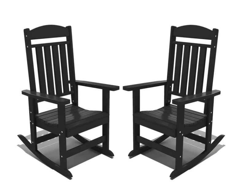 A porch without rocking chairs is just a platform with trust issues. This set gives you that cozy, old-school front porch look, but with all-weather material that is easier to deal with than real wood. These are the kind of chairs that make coffee taste better and neighborhood gossip travel faster.