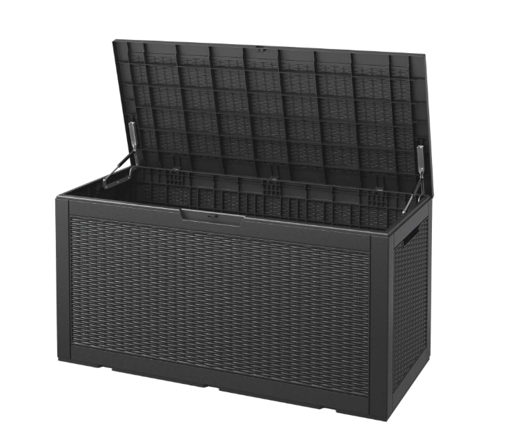 This is the piece that does the boring but necessary work. It gives you a big spot to stash cushions, garden tools, pool toys, or all the other outdoor clutter that somehow multiplies overnight. It also helps the porch look calmer and more intentional.