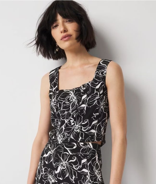 1) Black and White Floral Corset Top